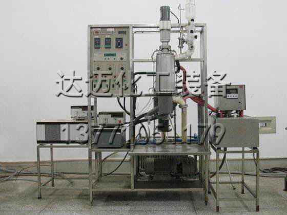 短程蒸馏器是一个工作在1~0.001mbar压力下热分离技术过程,它较低的沸腾温度,适合热敏性、高沸点物。其基本构成:带有加热夹套的圆柱型筒体,转子和内置冷凝器;在转子的固定架上装有刮膜器和防飞溅装置。内置冷凝器位于蒸发器的中心,转子在圆柱型筒体和冷凝器之间旋转。